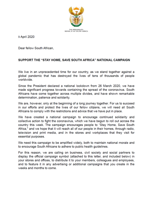 The Presidency: Support the “Stay Home, Save South Africa” National Campaign